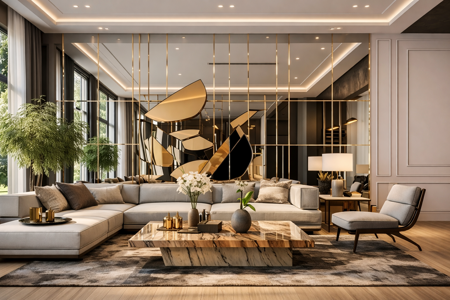Disponible en finition or miroir et argent miroir, notre panneau décoratif s’adapte à tous les styles d’intérieur.
