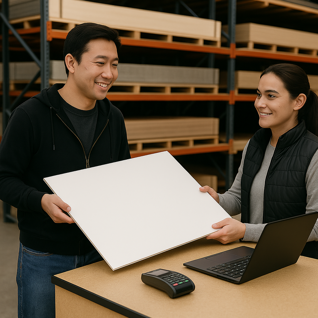 Notre entrepôt est à la fois un point de retrait Click & Collect et un espace de vente directe pour les professionnels. Vous pouvez y récupérer vos commandes passées en ligne ou acheter vos panneaux et plaques directement sur place.
